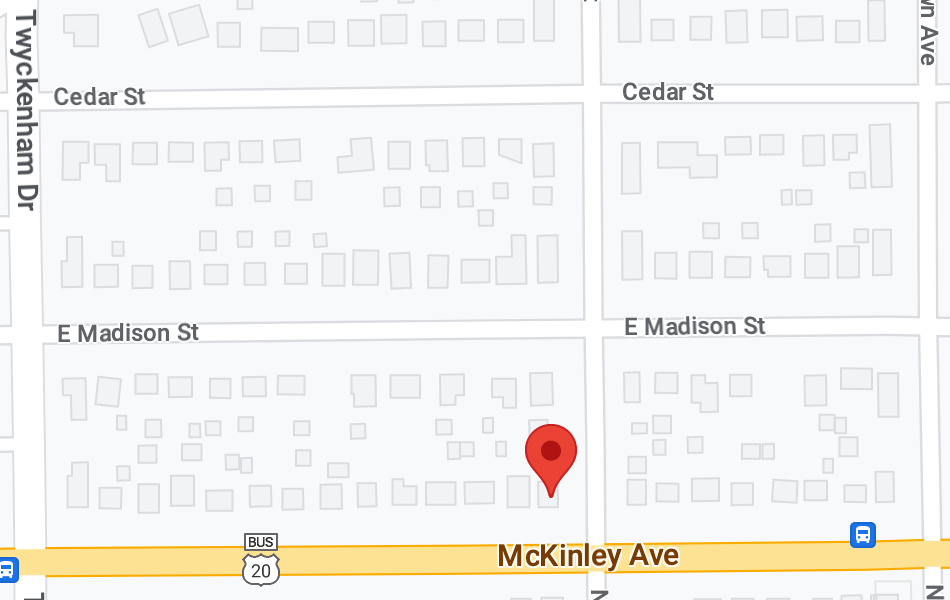 Early on in the film, you can see in the background behind their garage (beyond where our house would be bulit in 1936) that there is what we first thought was a barn, but we were confused by the perspective. Dan (Minds) actually found what is, actually, one of the other first houses in the neighborhood, which is on Cedar street a block and a half to the north. At this point, I will pause to add a map so that readers can orient themselves. Our house is on the corner of E. Madison and N. Esther. The red dot highlights the house at 331 N. Esther: