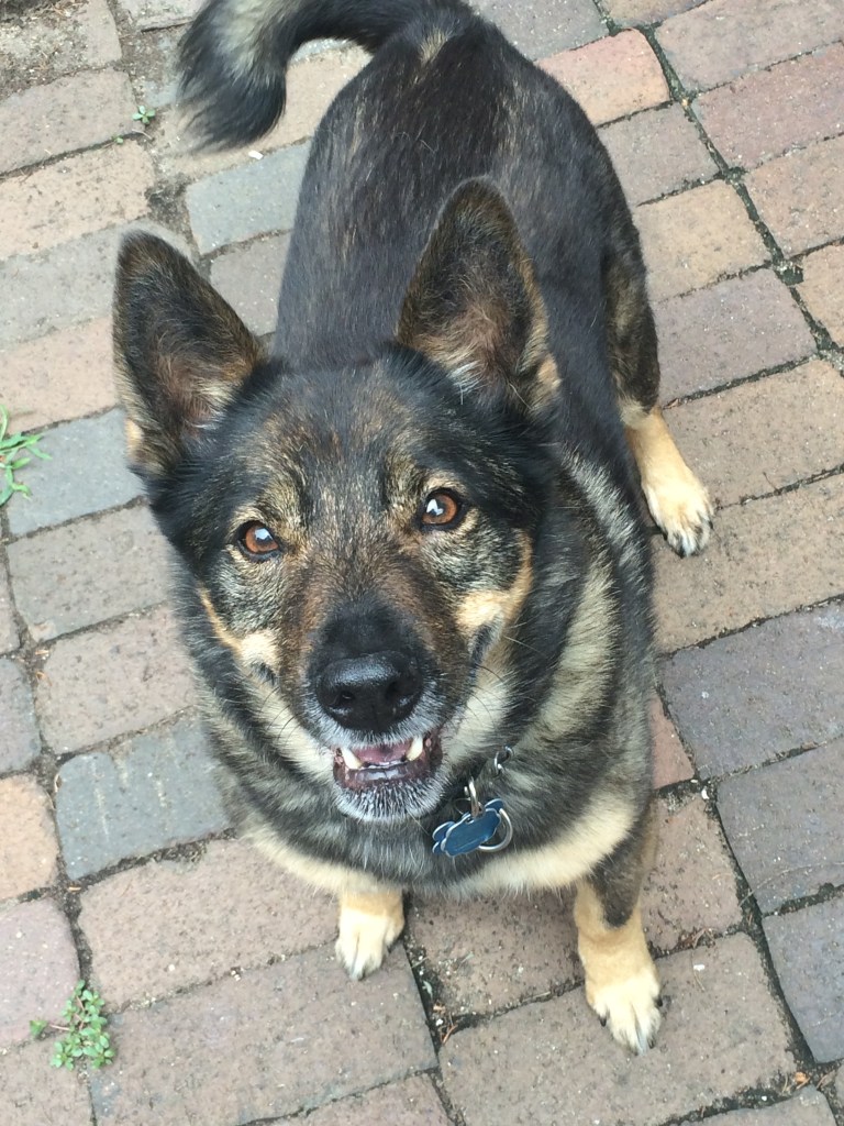 One of our dogs, Caoilin (“Keelin”), was a powerhouse who hated spaces on ground surfaces, such as the grated iron bridges that we walked on near our home in Virginia. Here’s our sturdy girl, that we described as a German Shepherd that had spent too much time in the dryer (shrimpy as she was):