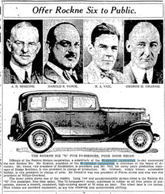 The Depression, of course, was a challenge for all corporate execs, but Erskine made a series of missteps according to analyses reported in the Tribune including paying shareholders major dividends and then trying to cover that major loss with a merger with White Motor Company. By mid 1933, the company was in receivership: