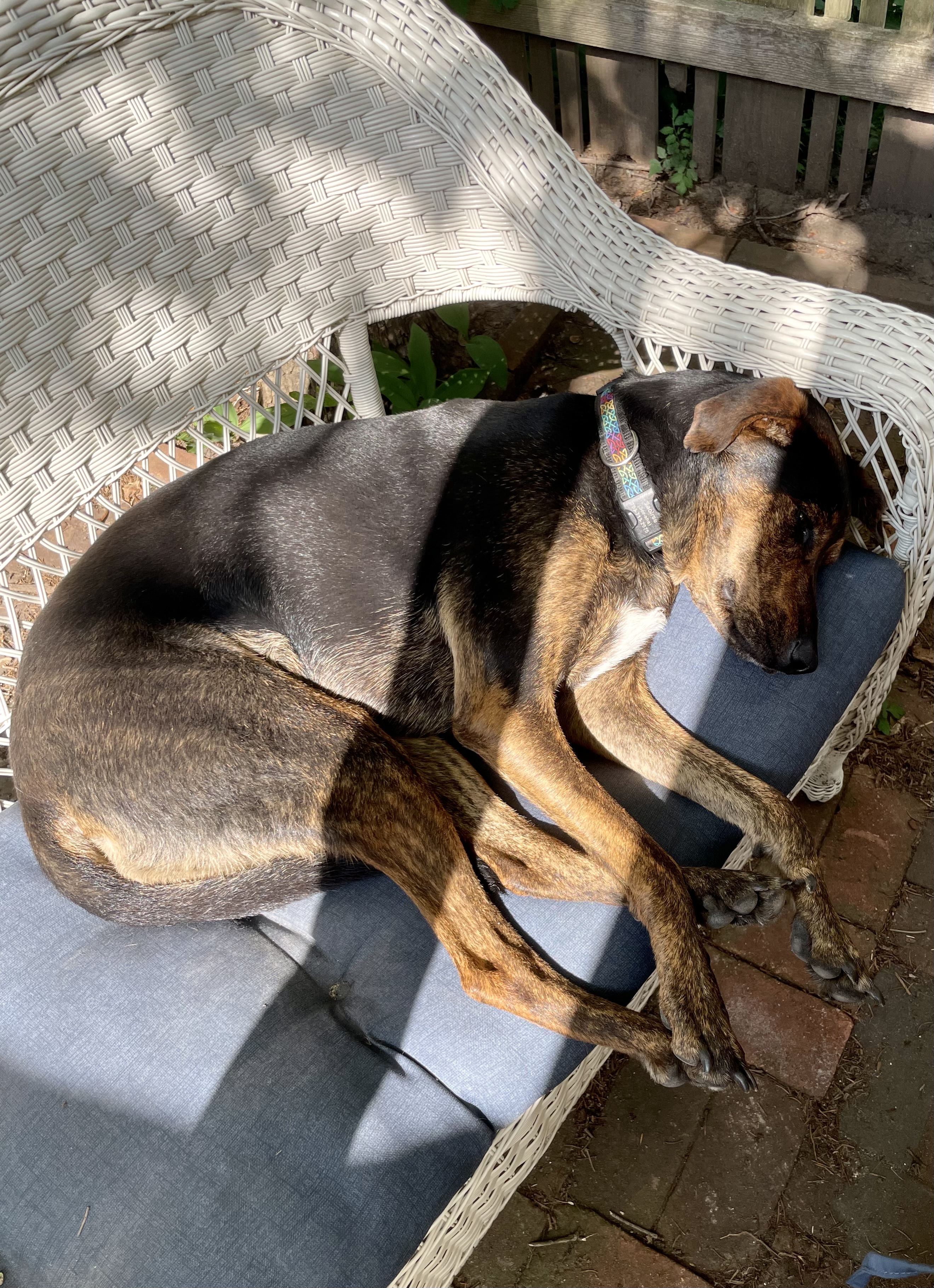 Saoirse (Sir-sha) enjoys the quiet outside while her peoples struggle with ongoing lack of progress.
