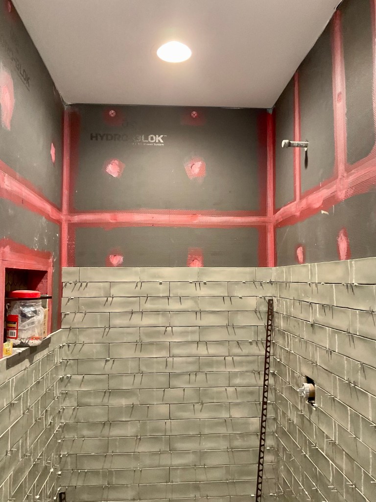 And while we have had significant delays in tiling our new 3/4 bath, the lighting is on there as well: