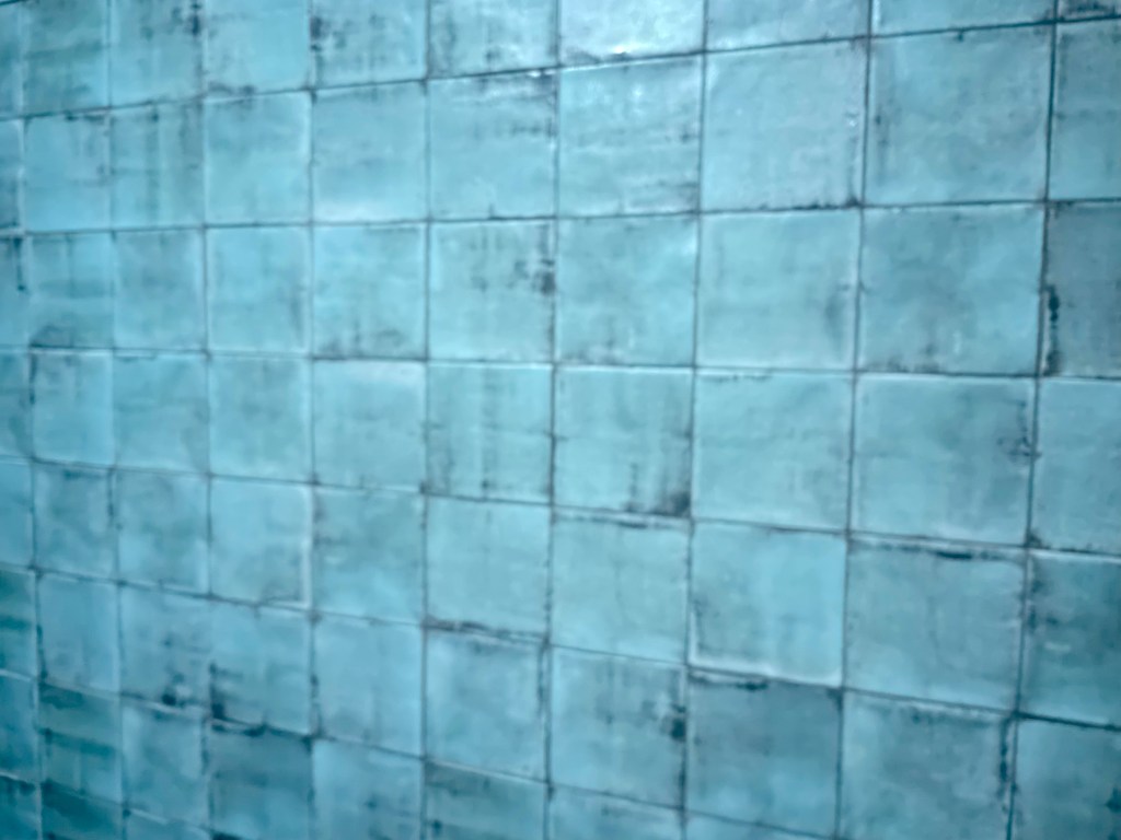As a potter, I prefer tile that has variety both in gloss and in depth. This is a challenge for tile setters because it’s more of a puzzle to make the spaces reasonably even and waterproof. This was, however, something we paid in the contract to make work. This tile is floor to ceiling around 3/4 of the bathroom, which is now about 12’ square.