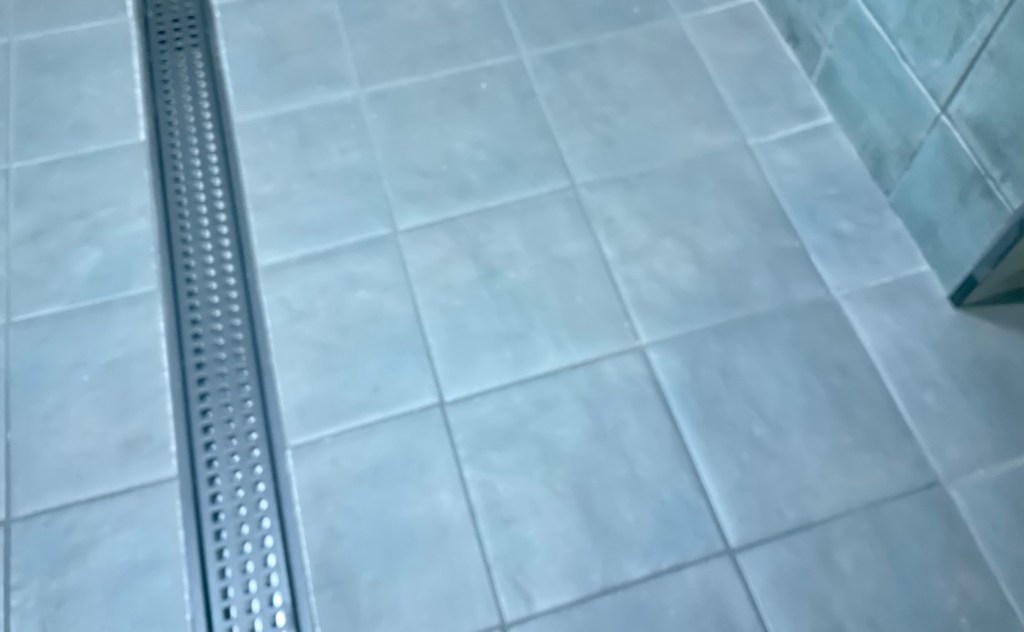 At this point, everyone was hoping we could live with the bad tiles. THEN, the plumber tested the (way too short, which we didn’t realize at the time) shower and realized that the poorly placed tiles in the shower area (which starts in the dark area on the left of the photo above) meant that the shower would pool water around the floor rather than drain.