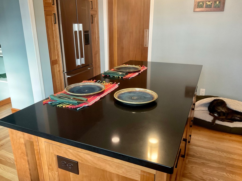Well, our Thanksgiving meal was not our best—and we’re typically pretty good at it! It was yummy, nonetheless and it was just for us, so it was a wonderful way to test the new space for a culinary joint effort. Being able to work in the space without crowding each other to an annoying degree was wonderful. Having the counter space to work on multiple projects at the same time was beyond amazing.